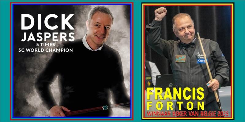 Op donderdag 18 september 2025 vanaf 15.30 uur komen DICK JASPERS en FRANCIS FORTON het opnemen tegen 10 spelers in een one-on-one...